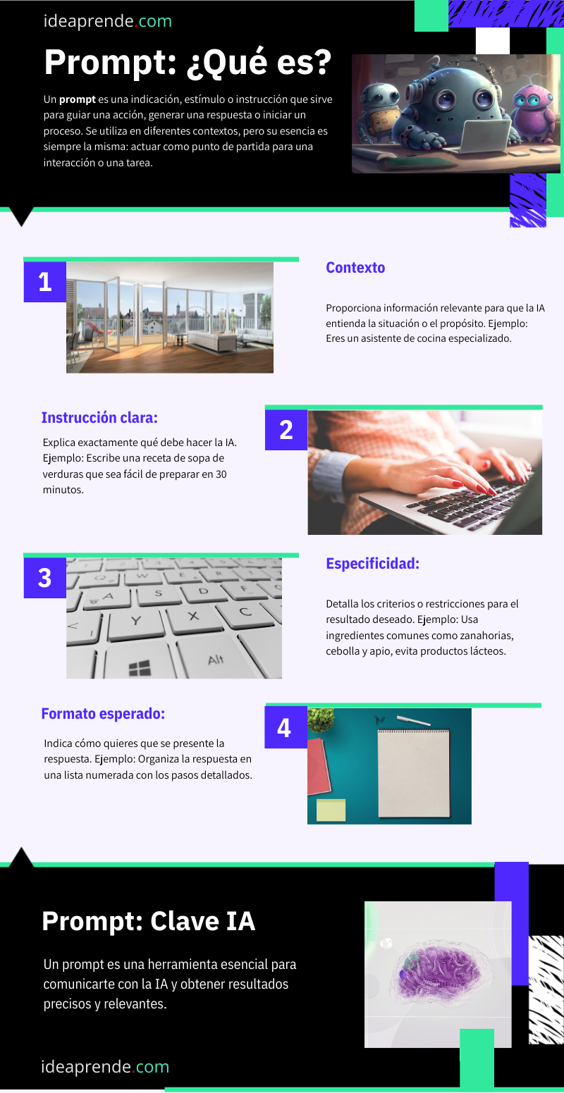 Un prompt es una indicación, estímulo o instrucción que sirve para guiar una acción, generar una respuesta o iniciar un proceso. Se utiliza en diferentes contextos, pero su esencia es siempre la misma: actuar como punto de partida para una interacción o una tarea.